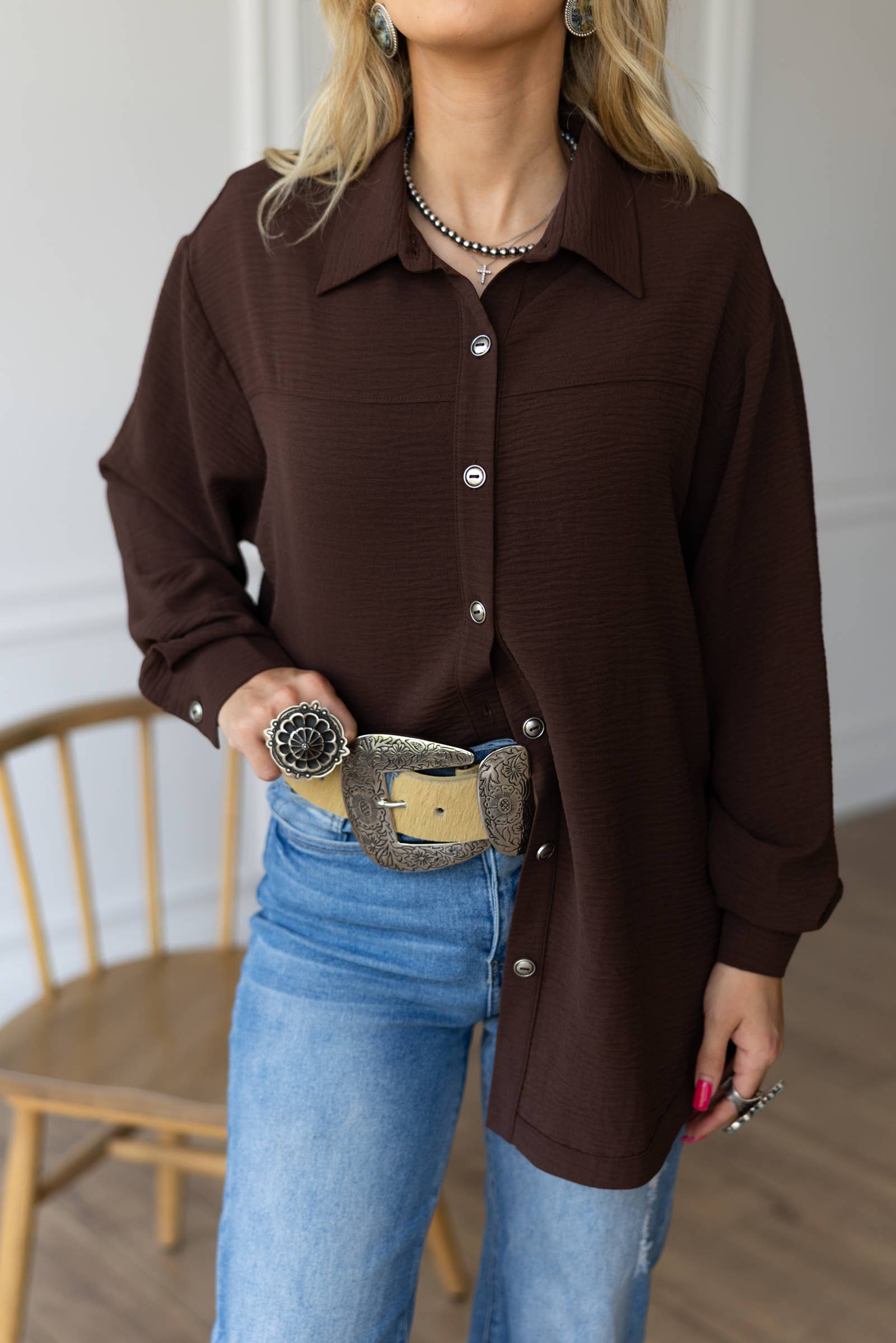 The Keily Buttoned Top in Rust combines effortless style with everyday comfort. Crafted from breathable woven fabric, this blouse features a relaxed silhouette that moves with you while the classic button front adds timeless appeal. The airy construction keeps you cool throughout the day, while the thoughtfully designed cut flatters all body types. Perfect for layering or wearing solo, this versatile piece transitions seamlessly from casual outings to relaxed work settings. Embrace comfort without compromising on style